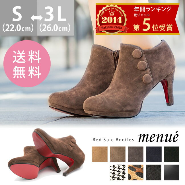 【9/3 19:00〜一部即納開始】【一部予約】★送料無料★ ラウンドボタン スエード レッドソール 美脚 ブーティ≪宅配便のみ≫ブーティ 夏 黒 レディース ブーティ ネイビー ストーム ショートブーツ ヒール 赤 2015秋モデル 大人 靴 大きいサイズ ブーティ